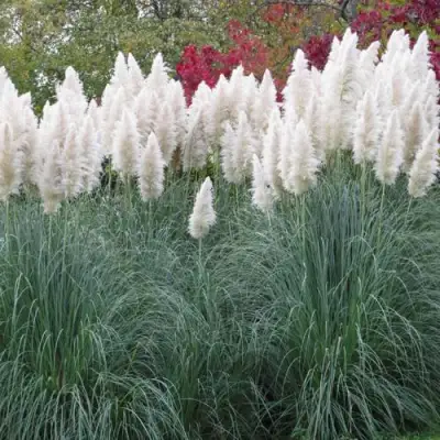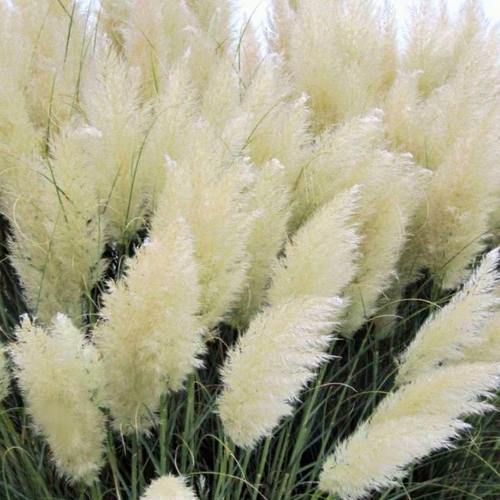 Если хотите купить пампасную траву для стильного сада, выбирайте белую кортадерию — она создаёт эффект дорогого ландшафтного дизайна, не требуя сложного ухода.