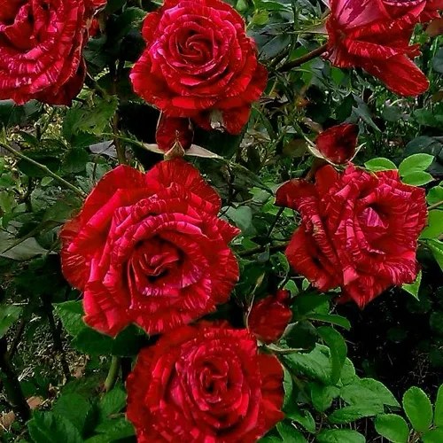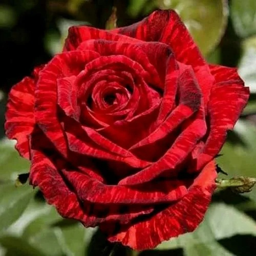 Цветки розы Ред Интуишн имеют красную основную окраску, а на их лепестках можно увидеть темно-красные полосы и штрихи, что добавляет им оригинальности. Форма бутона - бокаловидная, а форма цветка - чашевидная с высоким центром. Размер цветка достаточно крупный и составляет от 8 до 10 см, а количество лепестков в районе 35-40.