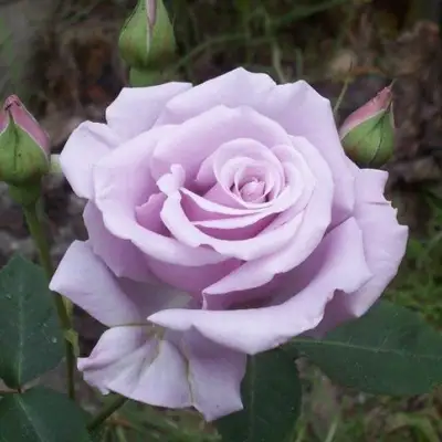Главное, за что ценят этот сорт, — крупные, одиночные цветки лавандово-серебристого тона с тонкой ноткой холодной розы. Диаметр — до 10 см, лепестков — около 20, структура — двойная, чашевидная. Цвет держится долго, не тускнеет даже под палящим солнцем. Цветение повторное: с конца весны до середины осени волнами, с короткими паузами. Аромат — мощный, ярко выраженный, с холодным цитрусовым акцентом и нотами пряной травы. Этот запах отчетливо чувствуется на расстоянии — редкость для сортов с таким нежным окрасом.