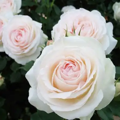 Окраска бутона розы Пале Рояль привлекает внимание своей нежностью и чарующей красотой. Внешние лепестки имеют салатовый оттенок, а сердцевина бутона выделяется жемчужно-розовым цветом. Окраска готового цветка жемчужно-белая, часто с нежно-розовыми или сиренево-розовыми оттенками.