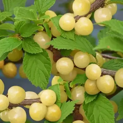 Плоды среднего срока созревания, обычно поспевают в июле. Ягоды округлые, массой 2,5–3,5 г, кремово-жёлтые, с нежной мякотью и тонкой кожицей. Вкус сладкий с легкой кислинкой. Косточка мелкая. Урожайность стабильная — до 6–9 кг с куста. Сорт частично самоплодный, для повышения урожая рекомендуется посадка нескольких кустов.