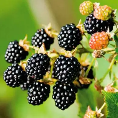 Ягоды ежевики Апачи — это настоящее наслаждение для гурманов. Их цвет варьируется от синевато-черного до глубокого фиолетового, что добавляет эстетической привлекательности. На вкус они сладкие и сбалансированные, с легкой кислинкой, что делает их идеальными для свежего употребления, приготовления десертов или варенья. Мякоть ягод плотная и сочная, а форма овальная, с широко-коническими очертаниями. Каждая ягода весит около 7-9 граммов, что добавляет ей привлекательности как для домашних, так и коммерческих целей.